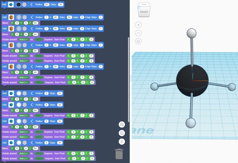 Students will use Tinkercad Coding to model an organic molecule. The simplest one we can make is Methane.